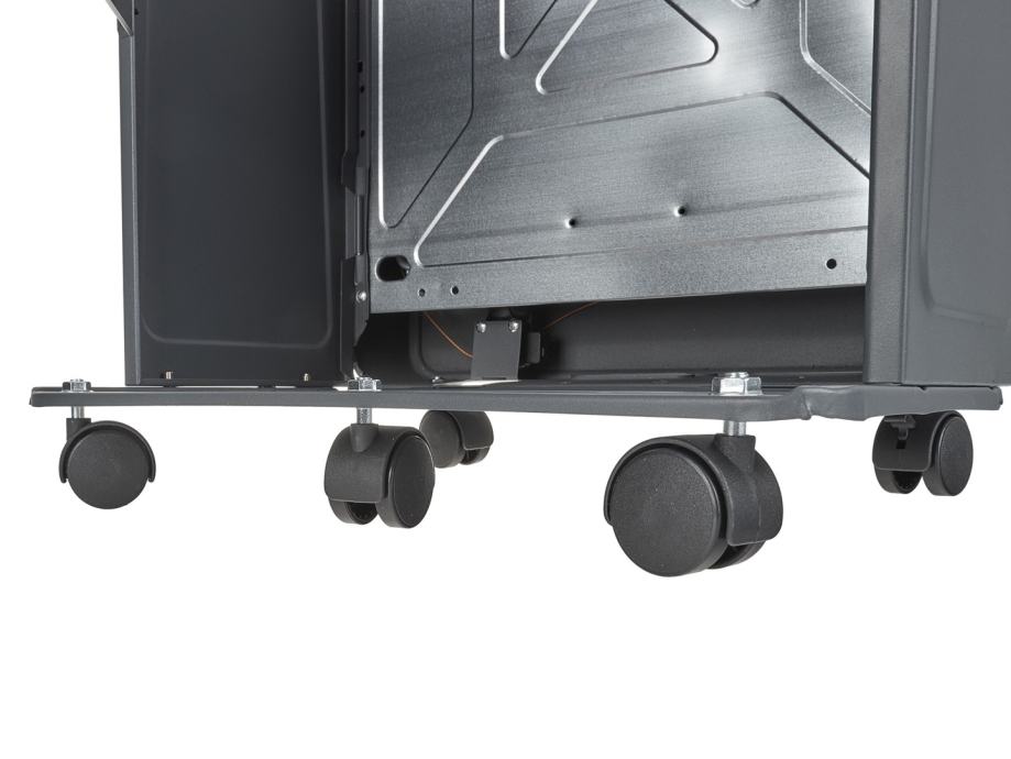 Enostavna montaža: Enostavna in hitra montaža vključuje pritrditev plošč in podstavka s šestimi vijaki in nato pritrditev koles.