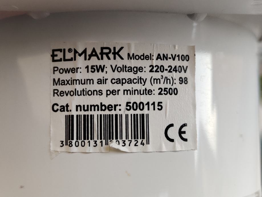 Prodam 1 leto rabljen ventilator fi 100, Elmark, 230 V, 15 W, 98 m3/h...