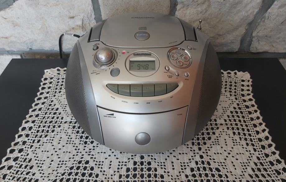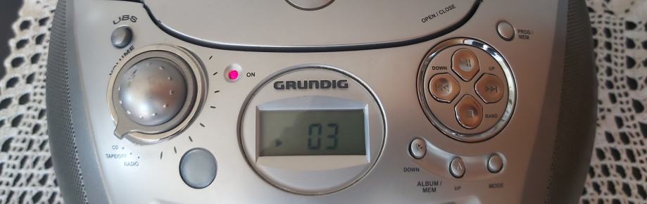 Grundig RRCD 2420 je preprost prenosni radiokasetofon z CD predvajalnikom znanega in uglednega podjetja Grundig. Lepi, priličeni gumbi za upravljanje in enostavn za uporabo.