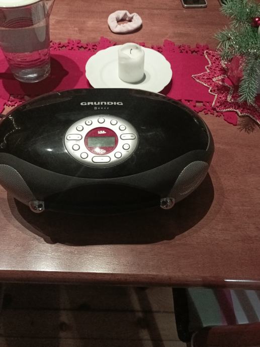 Prodam rabljen Grundig prenosni radio z mp3 predvajalnikom, predvaja preko usbja, cdja, pa tudi preko kartice sd/mmc, možno je tudi poslušati FM/AM postaje.