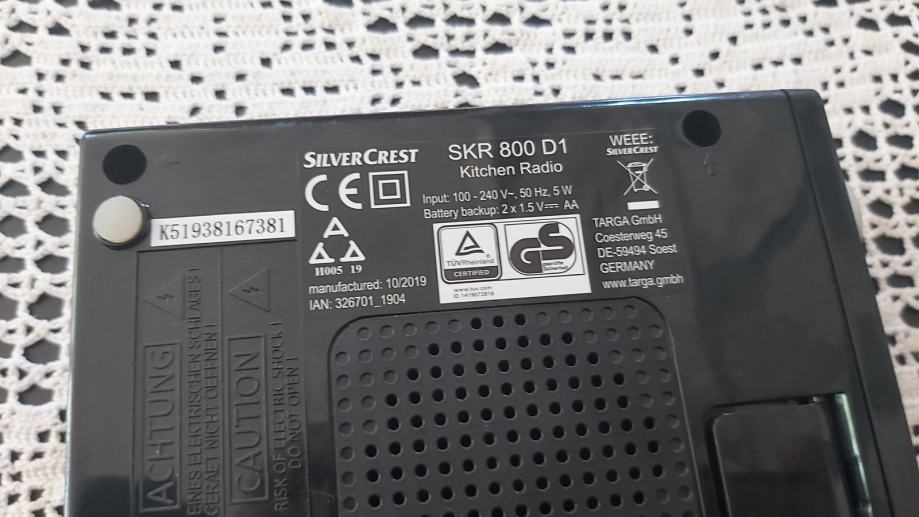 Kuhinjski radio SilverCrest SKR 800 D1 za namestitev pod kuhinjsko omarico.