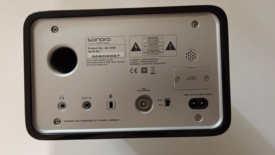 Notranja FM antena, priključek na zadnji strani za zunanjo FM anteno. Preklopno stikalo za notranjo / zunanjo anteno.