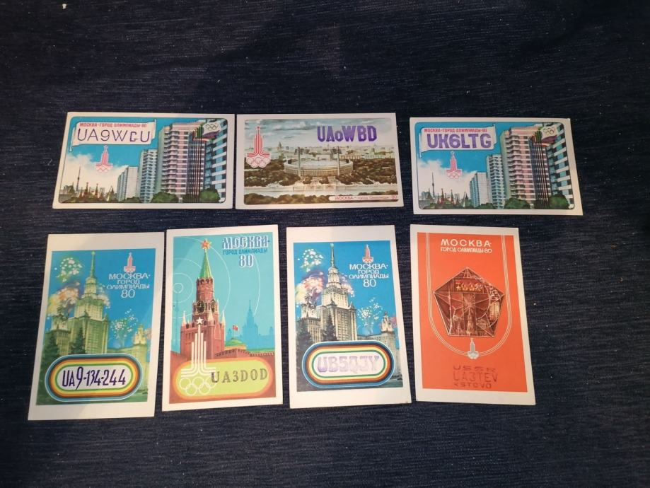 Ohranjene kartice radioamaterjev iz 1980 let iz Olimpiskih iger v Moskvi. Osebni prevzem v Mariboru ali pošljem po pošti na stroške kupca.