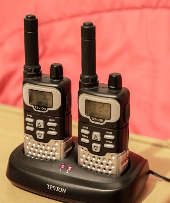Prodam Walkie Talkie (voki-toki) Tevion PMR XR 2 kosa z polnilno napravo in polnilcem. Vse je kot novo in deluje brezhibno.