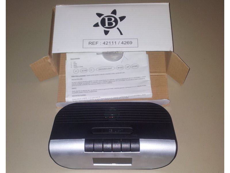 S pritiskom na gumb MODE nastavljamo uro in alarm, s pritiskanjem na gumb SCAN radio sam išče (in se na njej zaustavi) naslednjo močnejšo radijsko postajo.
