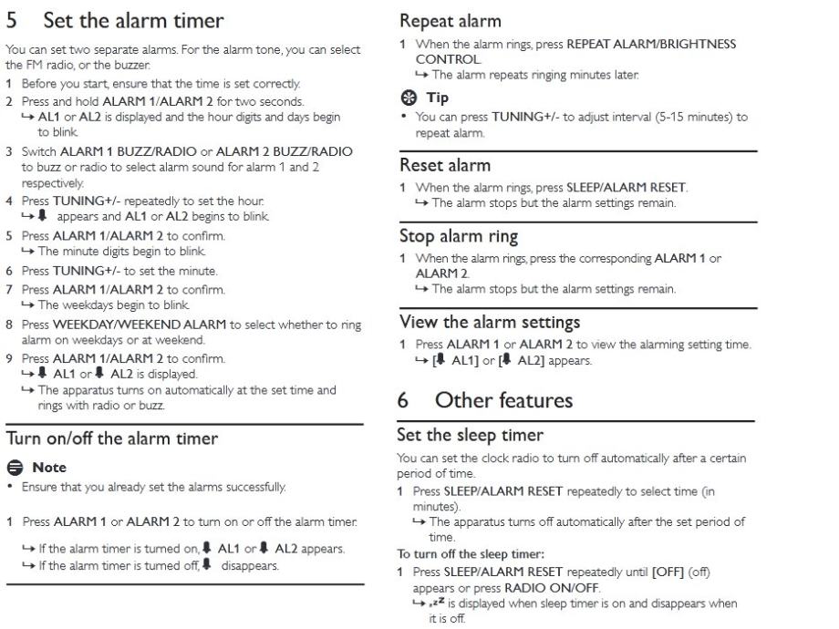 Lahko nastavimo dva časovno različna alarma-bujenje (navodila so na slikah v oglasu oz. v uporab. priročniku - gl. povezavo nanj na koncu oglasa).