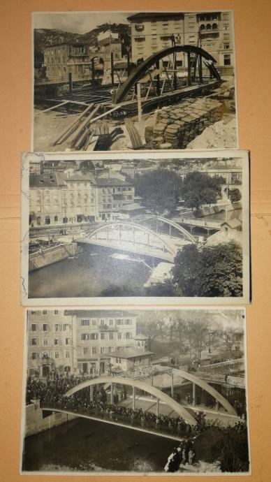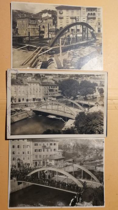 3 fotografije mejnega mosta med Reko in Sušakom leta 1926, izgradnja, velikost fotografij 17x12cm.