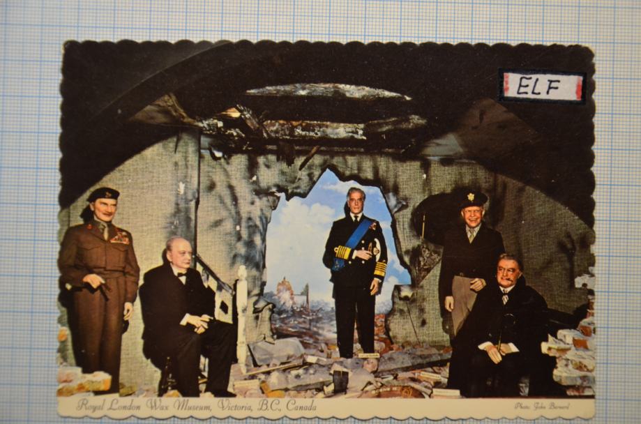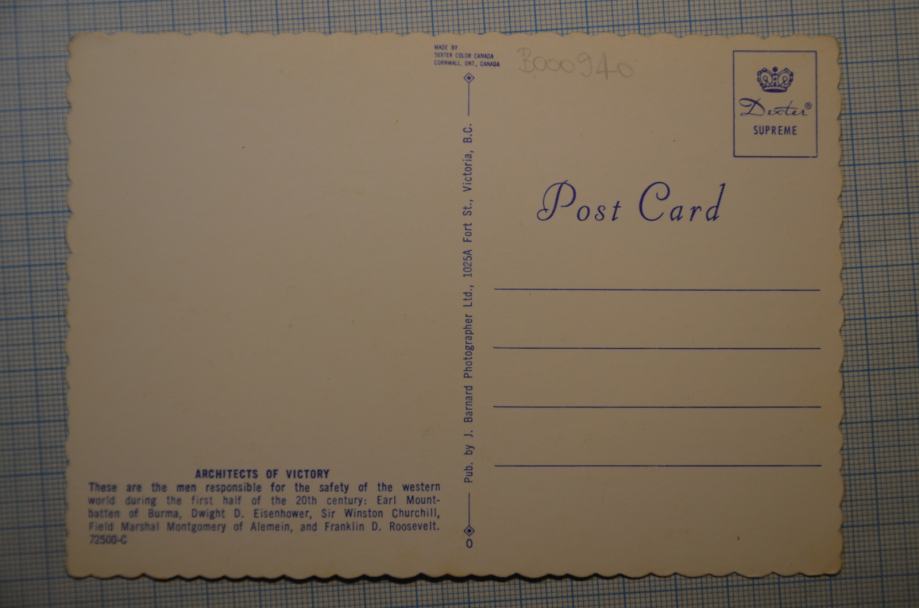 Razglednica - ARHITEKTI ZMAGE - To so možje, odgovorni za varnost zahodnega sveta v prvi polovici 20. stoletja ; Earl Mountbatten iz Burme, Dwight D. Eisenhower, sir Winston Churchill, feldmaršal Montgomery iz Alemeina in Franklin D. Roosevelt.