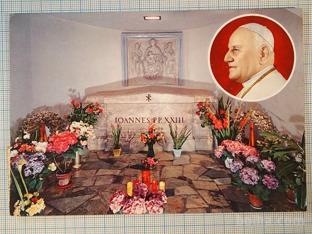 Razgldnica IOANNES PP XXIII, Janez XXIII., rojen kot Angelo Giuseppe Roncalli, papež Rimskokatoliške cerkve od 28. oktobra 1958 do smrti, * 25. november 1881, Sotto il Monte, Bergamo, Italija, † 3. junij 1963, Vatikan. Potovala - datum ni razviden.