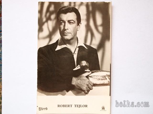 Razglednica Robert TAYLOR, 1911 - 1969, Avstralski igralec, potovala 1958, znamka odstranjena.