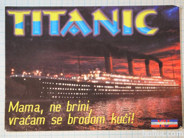 Šaljiva razglednica TITANIC, (Mama ne brini, vračam se brodom kuči ! ,. potovala 1998.