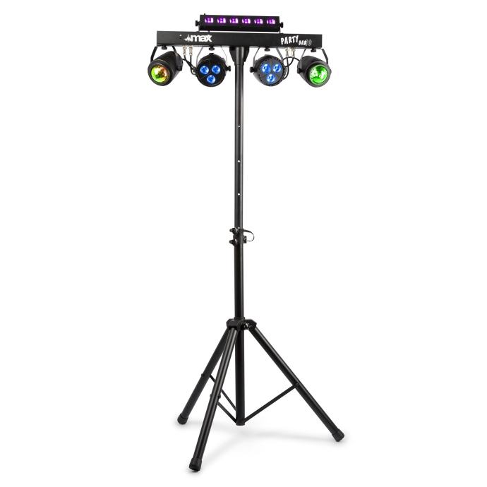 MAX PartyBar LED Svetlobni Set | RGBW | UV & Strobe | DMX | IR Daljinec | S Stojalom do 1.8 m