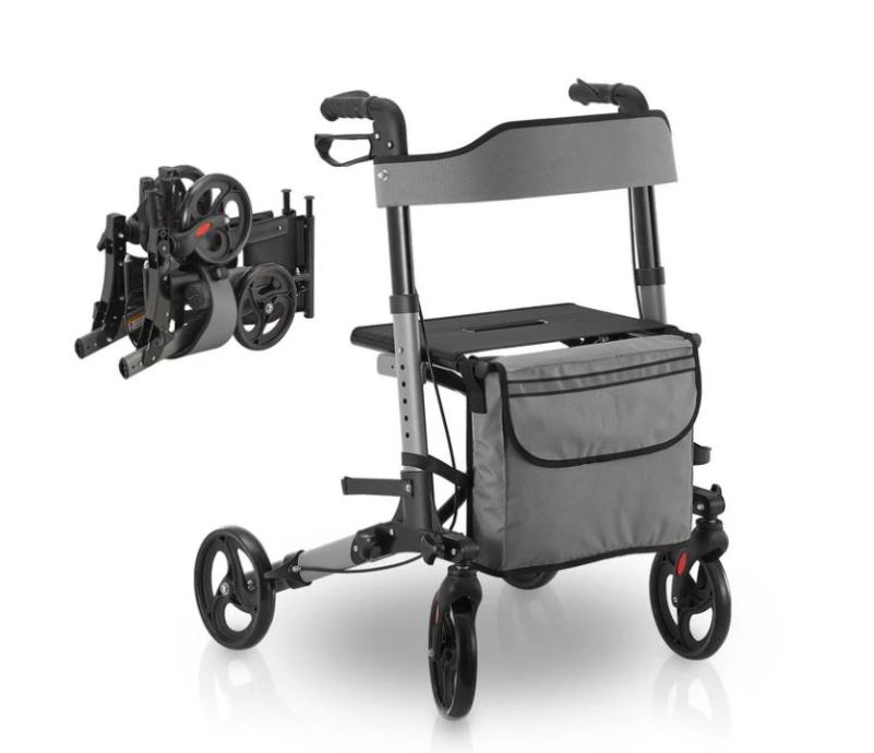 Sodoben, zložljiv aluminijast voziček Vital Rolator je koristen za starejše in odrasle z invalidnostjo pri hoji. Ne glede na to, ali greste k zdravniku, po nakupih ali k frizerju, ta izdelek podpira vas ali vaše starše tako v zaprtih prostorih kot na prostem. Z aluminijastim vozičkom se počutite varno in mobilno ter si zagotovite več svobode v vsakdanjem življenju! Sveža barva in sodoben dizajn sta v primerjavi s tradicionalnimi modeli impresivni. Poleg tega se voziček s sedežem hitro postavi in zloži, da prihrani prostor v avtomobilu. Poleg odstranljive torbe je priloženo tudi držalo za palico ali dežnik.