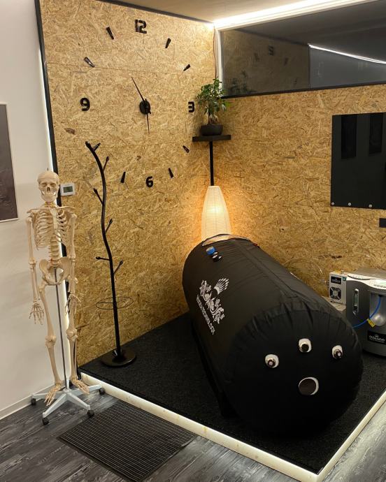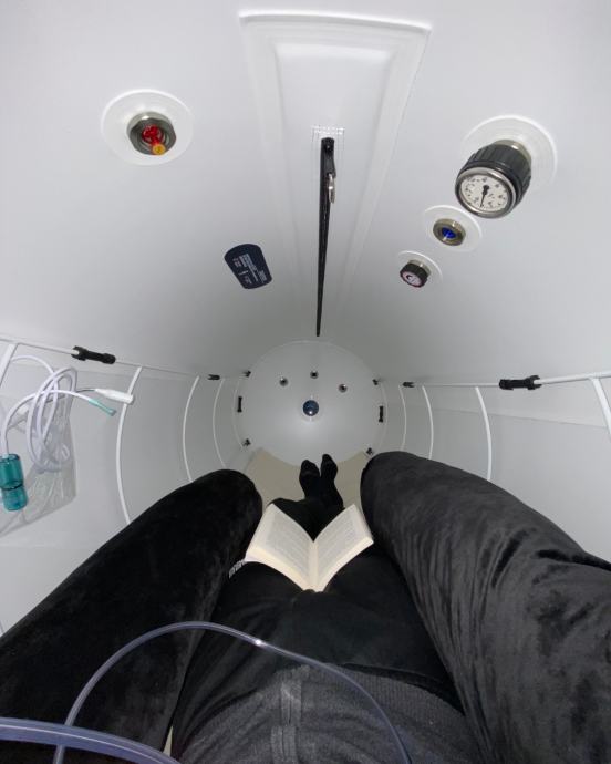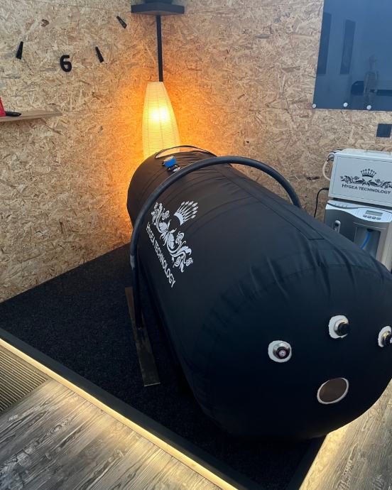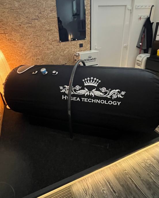 Zraven podarim body pillow za večje udobje med tretmajem + kovinsko konstrukcijo (vidno na sliki) za lazji vstop/izstop iz komore + kisikove maske.