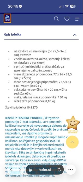 Nova hodulja še zapakirana kupljena v hofru za 119€
