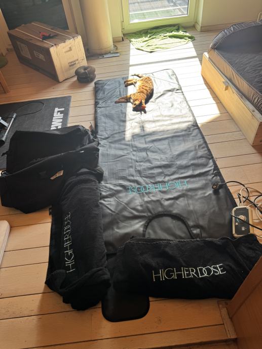 Ste si kdaj želeli savno doma pa niste imeli prostora? Rešitev je savna podjetja higer dose, v v obliki žepa, v ki ga lahko položite na posteljo in zlezete v njo. Ima tri nastavitve, v savno lahko greste goli ali v priloženi brisači. več si lahko preberete na