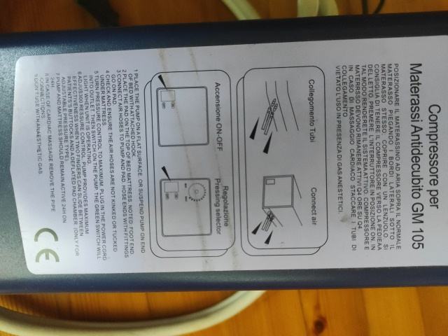 Prodam italijanski kompresor za antidekubitusno blazino Gi-emme model GM 105 z možnostjo nastavitve moči.
