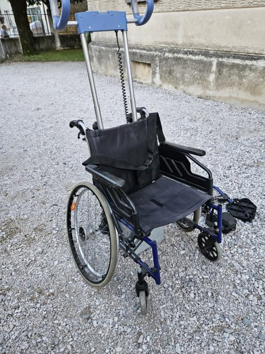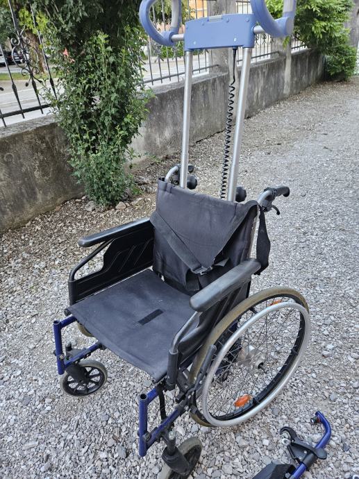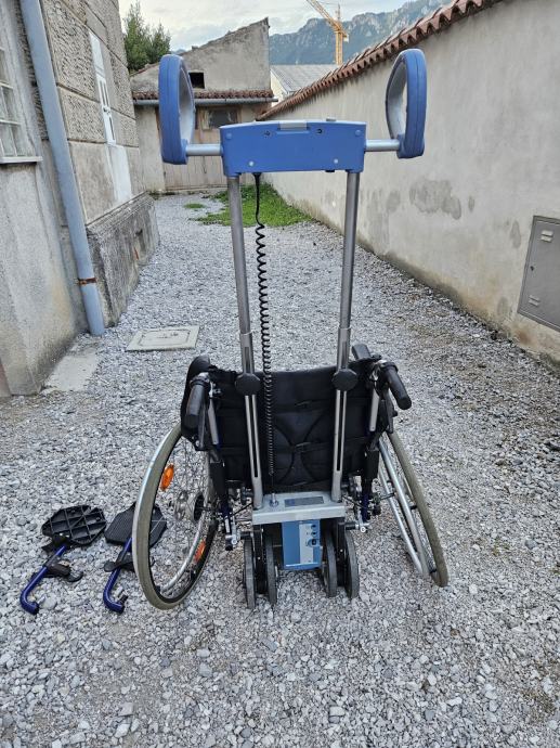 Kratek opis: je pripomoček za invalidski voziček, za hojo po stopnicah. Zadeva je električna tako da lahko z njo upravlja tudi starejša oseba brez večjega fizičnega napora. Zraven pripada vse kar je na sliki, tudi originalen invalidski voziček namenjen temu.