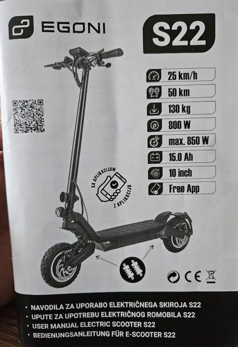 Prodamo el.skiro zaradi nakupa večjega EGONI S 22 dobro ohranjen 800w / 45km/h, še v garanciji. Cena ni zadnja!