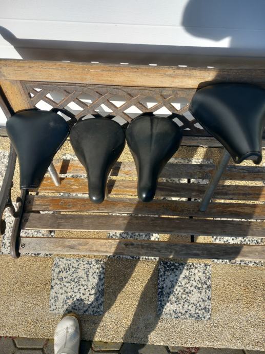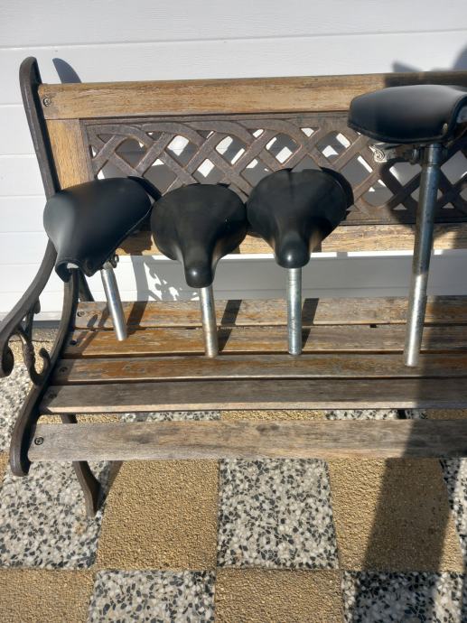 Več različnih sedežev za kolo. Cena za kos je 5 €.