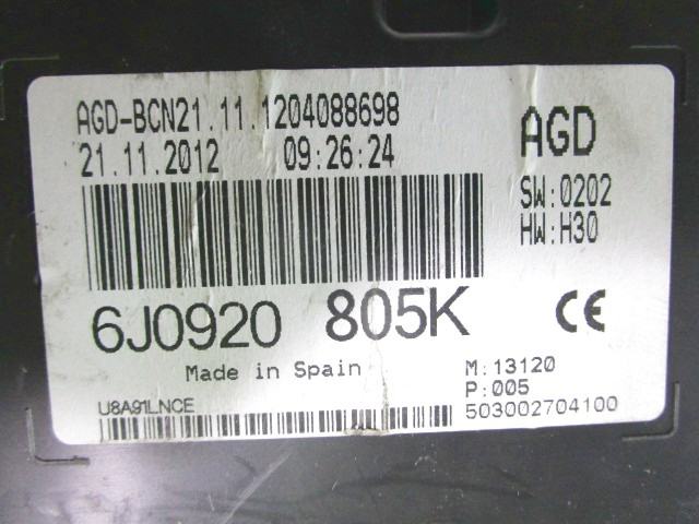 KILOMETER STEVEC OEM N. 6J0920805K ORIGINAL REZERVNI DEL SEAT IBIZA 6J5 6P1 MK4 BER/SW (2008 - 2012)BENZINA LETNIK 2012