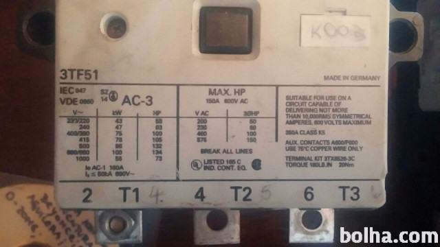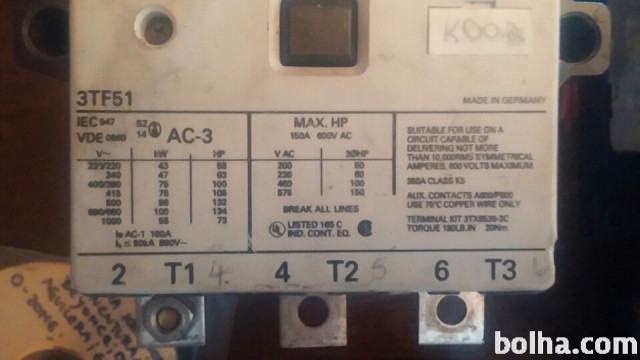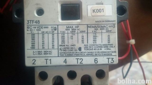 Cena za en kontaktor, amperaža na sliki. Na sliki tudi glavno stikalo, cena na kom.