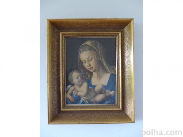 Reprodukcija slike Albrechta Dürerja z naslovom Marija z otrokom in rezino hruške, brezhibno okvirjena in ohranjena, dimenzije z okvirjem so 30 x 36 cm. Original dela neprecenljive vrednosti iz leta 1512 se nahaja v dunajskem umetnostno-zgodovinskem muzeju. V filmu All the money in the world (2017) se tej umetnini ne more odreči J. P. Getty. Tel. 031571440