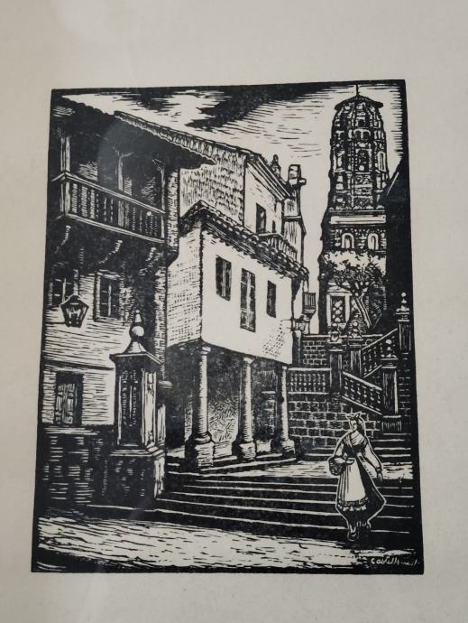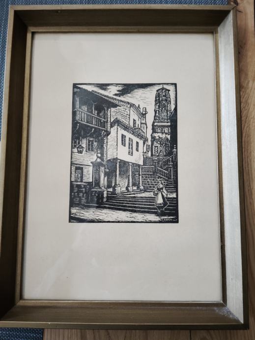 Reprodukcija leta 1980 umrlega umetnika, mere lista 35,5x25, okvir pa 38,5x28,5, xilografija oz.lesorez.
