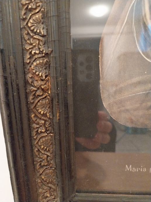 Zelo stara reprodukcija na kaširanem kartonu, pod steklom, restavrirana v zelo lepem okvirju s pozlato, vredna nakupa.