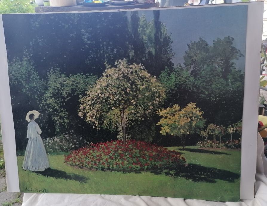 Na voljo je SLIKA brez okvirja in stekla 62 x 50 cm MONET ŽENSKA V VRTU (tisk na platno).