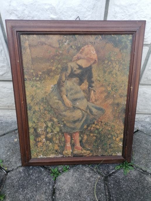 Na voljo je SLIKA na lesonitu v okvirju brez stekla 48 x 58 cm Camille Passarro Kmečka ženska sedi.