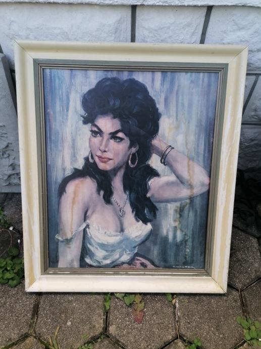 Na voljo je SLIKA na lesonitu v širokem debelem okvirju brez stekla 81,5 x 71 cm CIGANKA.