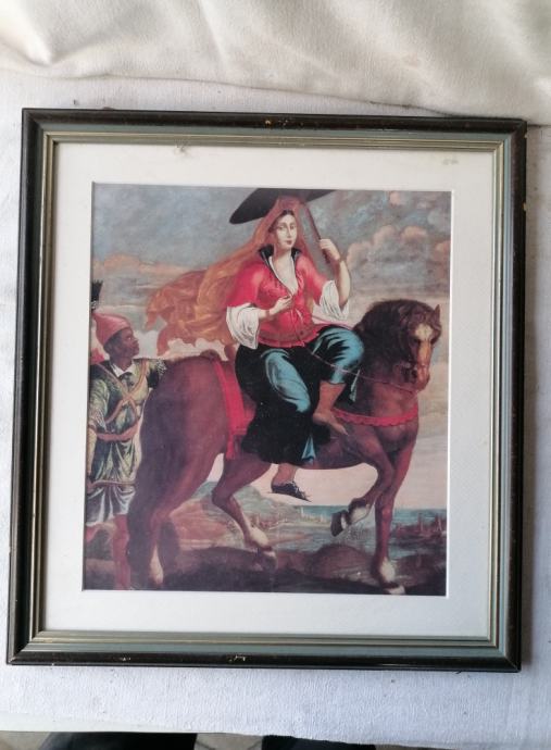 Na voljo je reprodukcija SLIKE v okvirju brez šipe 34,5 x 37 cm TURKINJA NA KONJU.