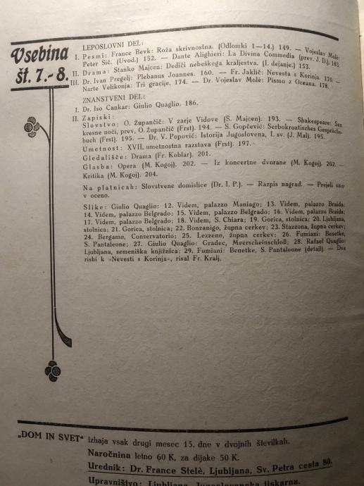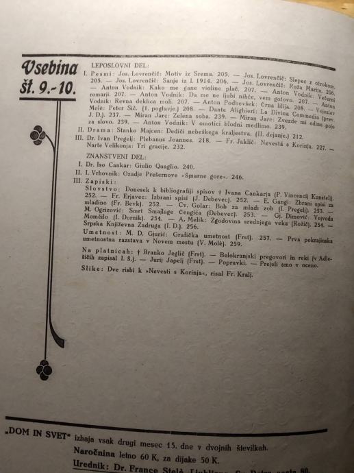 Dom in svet - književnosti in umetnosti 1920
