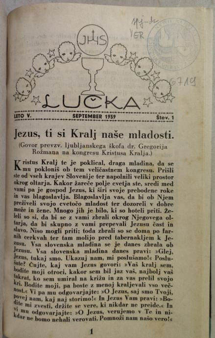 Lučka : verski list za otroke, 1939/1940, št. 1-9