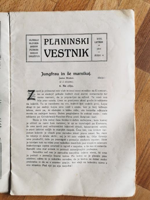 Planinski vestnik št. 9 iz leta 1911.