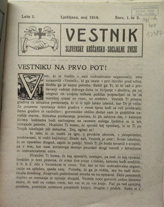 Naslov Vestnik slovenske krščansko-socijalne zveze / Odgovorni urednik Ivan Štefe
