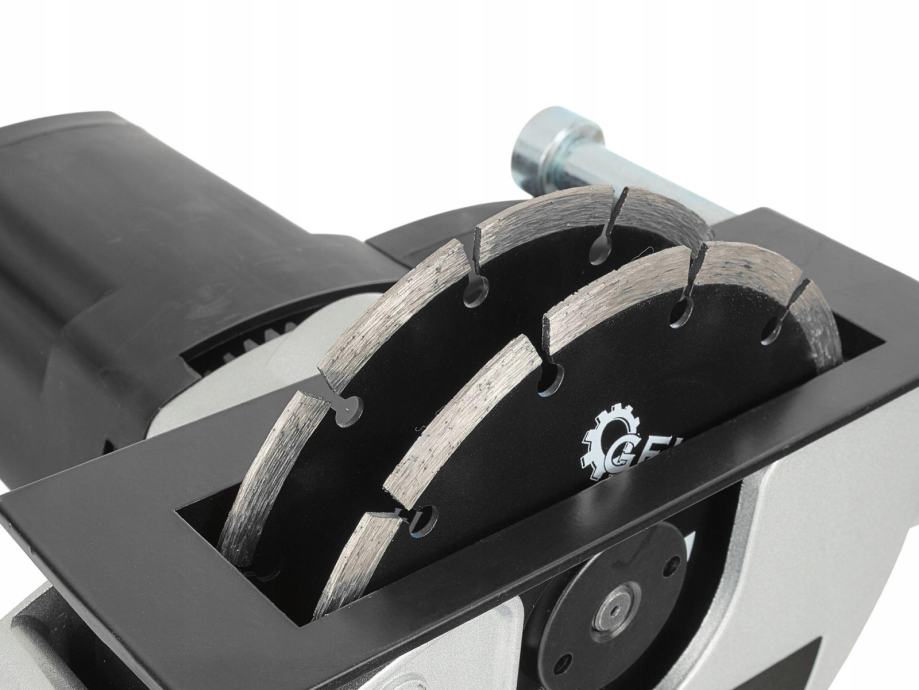 Naprava omogoča vgradnjo dveh diamantnih rezil dimenzij 150×1,9×22,2 mm. Dve rezili, ki delujeta hkrati, omogočata hitrejše in učinkovitejše ustvarjanje utorov v primerjavi z orodji z enim rezilom. Tako je delo na večjih površinah opravljeno veliko hitreje. Poleg tega dve rezili olajšata ustvarjanje vzporednih utorov z enakomerno širino, kar je ključnega pomena za projekte, ki zahtevajo natančnost. Z dvema reziloma je postopek rezanja porazdeljen med njima, kar zmanjša obremenitev posameznega rezila in poveča vzdržljivost orodja.