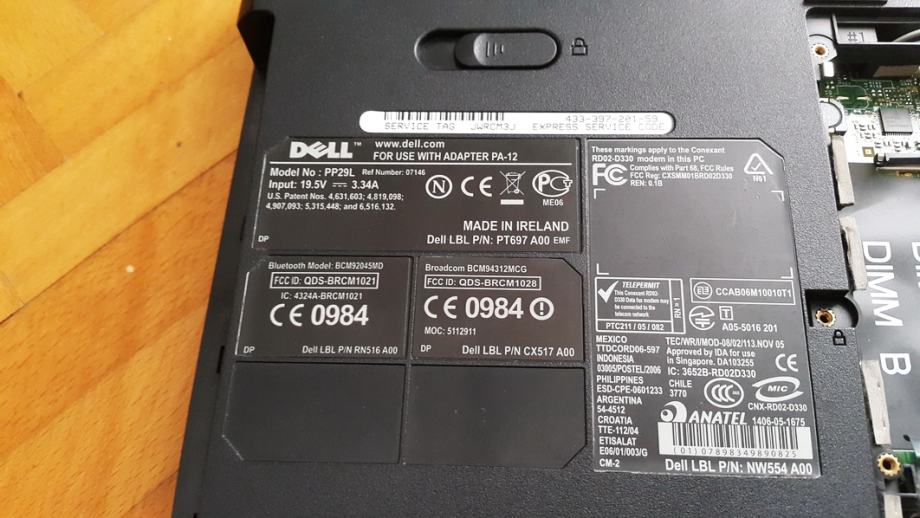 - WiFi kartico (BroadCom BCM94312MCG, CN-0WX781-71617-83L-2CBB; okvirna cena 4 €)