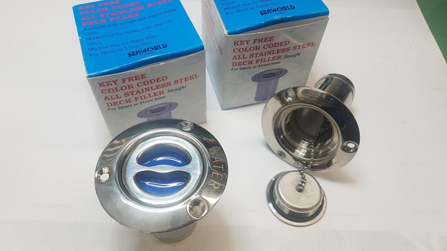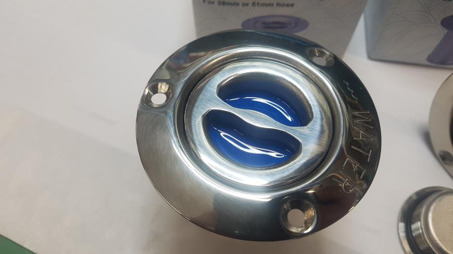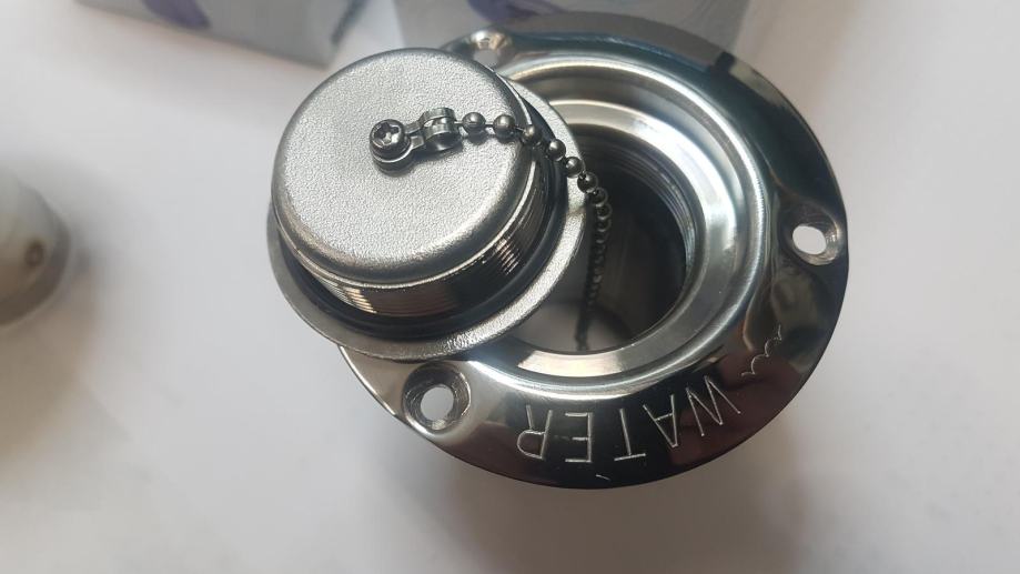 Prodam nalivni tulec za palubo iz inoxa. Širina zgoraj 82mm, zunanji premer inox nastavka za cev 38,5mm. Dolžina čez vse 83mm.