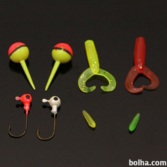V kompletu je vse kar rabite za ribolov (palica, rolo, laks, trnek, plovec, umetne vabe).