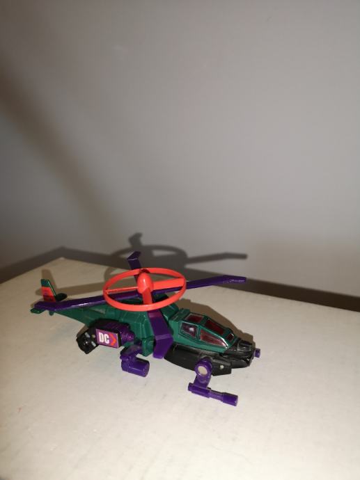 Prodam dobro ohranjeno otroško igračo Go-Bot RD-b93 Transformer v obliki helikopterja. Rdeč propeler naviješ in ga izstreli.
