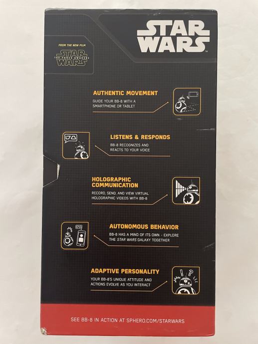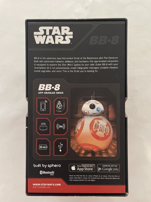 Sphero je predstavil robota BB-8, ki bo razvijal čisto svojo osebnost, ta pa se bo skozi interakcijo prilagajala vaši. Robota, ki bo imel približno 8cm premera, se bo usmerjalo z mobilno aplikacijo, s katero se bo povezal preko bluetootha. Poleg daljinskega vodenja mu boste lahko vnaprej določili pot premikanja, robot bo lahko tudi brez vodenja samostojno raziskoval vaš dom, odzival pa se bo tudi na vaš glas. Tudi aplikacija bo tako napredna kot robot sam. Vsebuje vse elemente iz Vojne Zvezd – grafike, animacije in zvoke, nad katerimi boste vsi navdušeni. Kot vsak pravi robot iz Vojne zvezd mora seveda tudi BB-8 znati posredovati tudi h.