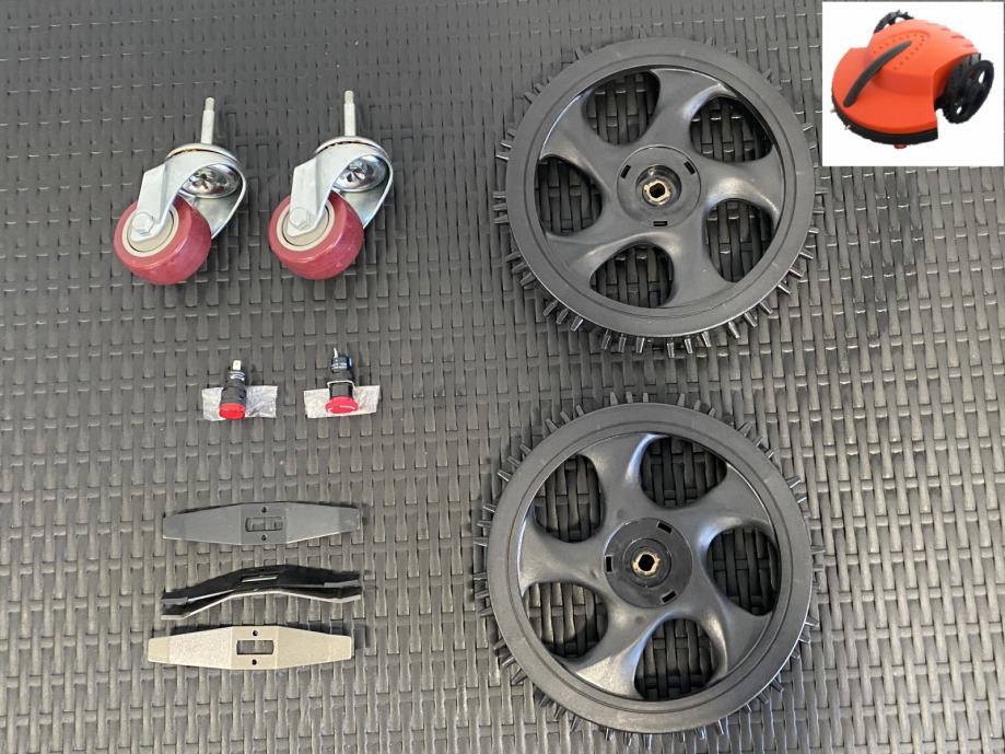 - 70 EUR (2x zadnje kolo + 2x sprednje kolo + 2x nož 4cm + 2x nož 3cm + LED lučka + tipka za izklop v sili)
