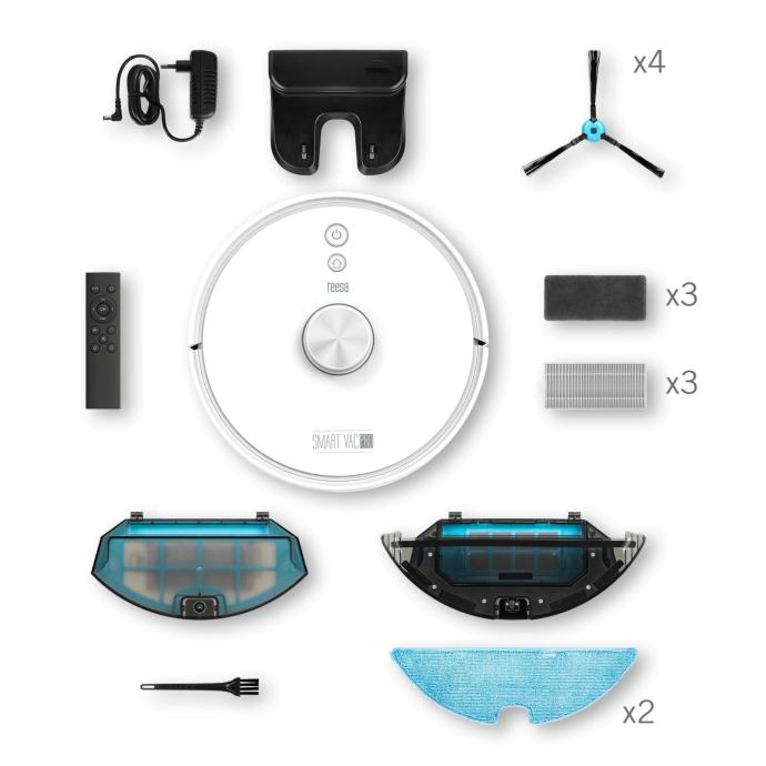Želite na hitro osvežiti tla doma? Ne izgubljajte časa s tem, za to so čistilni roboti! Samo pritrdite krpo in napolnite rezervoar z vodo in robot Teesa SMART VAC PRO, opremljen s funkcijo brisanja, ne bo samo posesal, temveč tudi pomil tla v vašem domu.