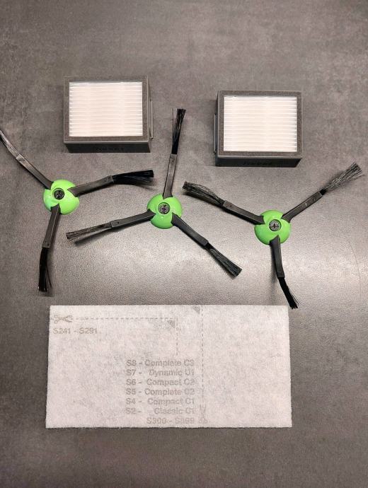 Zraven sesalnika priložim 1 x navidezno steno (virtual wall), 3x dodatna rezervna nova rotacijska ščetina ter 2 x nova filtra