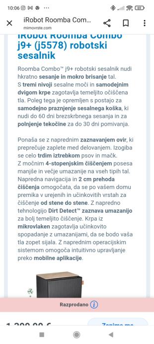 Prodam malo rabljen iRobot Roomba j9+. Kupljen 2 leti nazaj, zelo malo rabljen, brezhibno delujoč.