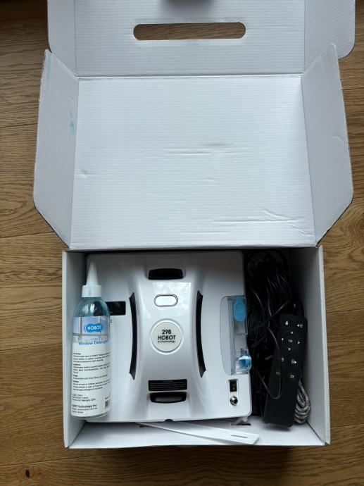 Prodam robotski čistilec oken Hobot 298 zaradi neuporabe - pozabil sem nanj in mi stoji v omari. Super za čiščenje težko dostopnih mest, možno ga je pritrditi tudi na vrv s karabinom, da slučajno ne bi padel z okna.