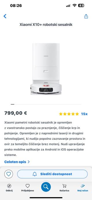 Prodam sesalnik now, originalno zapakiran. Sesalnik sesa in briše z rotirajočima discoma na katerema sta 2 krpici. Sesalnik je popolnoma avtomatičen. Ima postajo na katerem se polni, izpraznuje kar posesa v vrečko v postaji. Očisti si krpice s čisto vodo in si jih z toplim zrakom posuši. V postaji sta 2 posodici, ena za cisto vodo druga za umazano. Cena novega je 800eur.