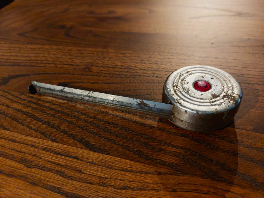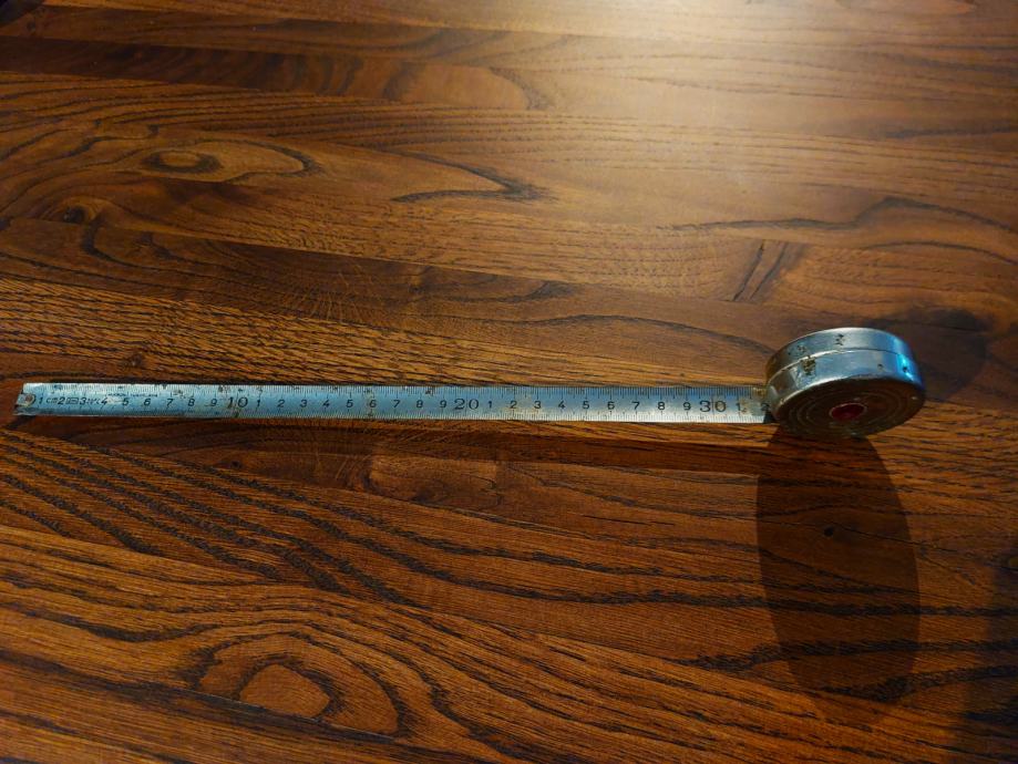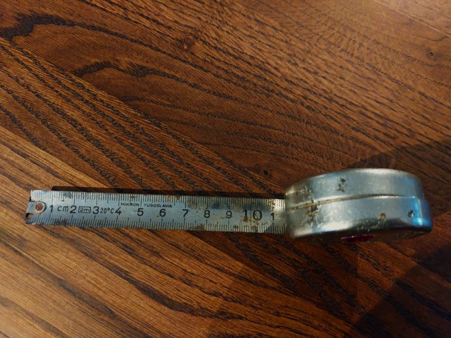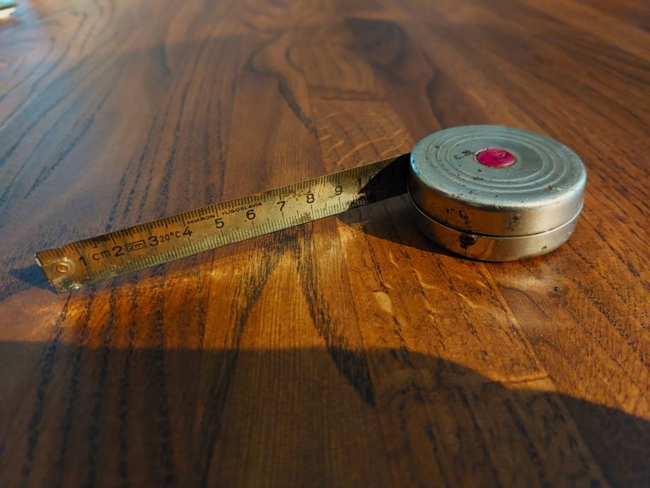 Mikron M-13 jekleni dvometrski kovinski meter - merilo, »ČELIČNI DVOMETAR«, Jugoslavija, premer 53 mm, dolžina 2 m, rabljen, brezhibno uporaben, prodamo za 5 € plus stroški pošiljanja.